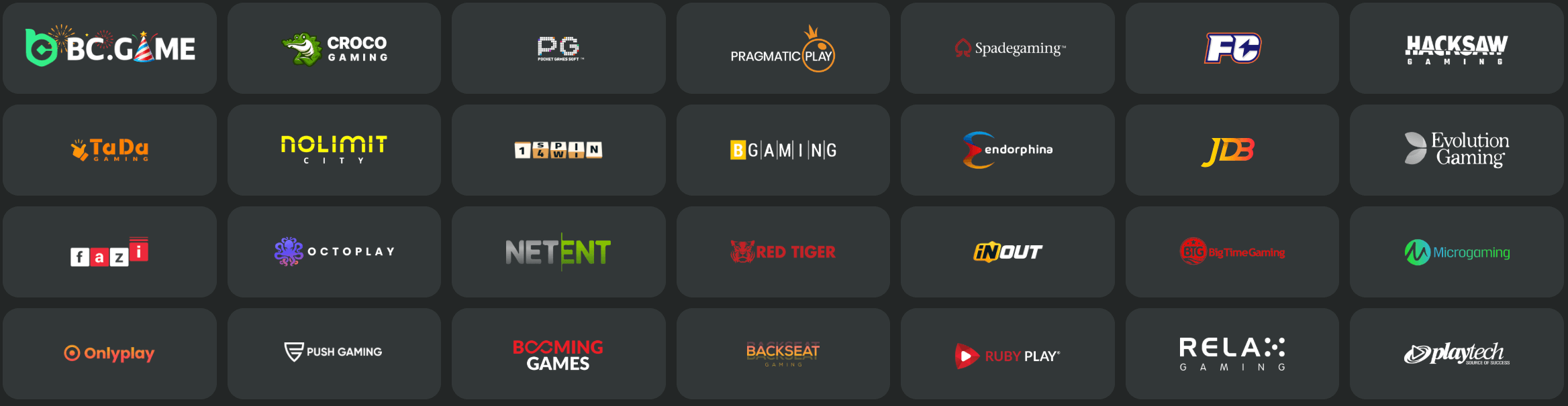 Au BC Game Casino, vous avez le choix entre plus de 80 développeurs de jeux. Tous offrent une expérience de jeu de grande qualité, avec plus de 10 000 jeux. Chaque développeur de jeux a ses propres atouts et séduit par des mécanismes de jeu différents. Cela garantit une grande variété et vous permet de trouver le jeu qui vous convient.